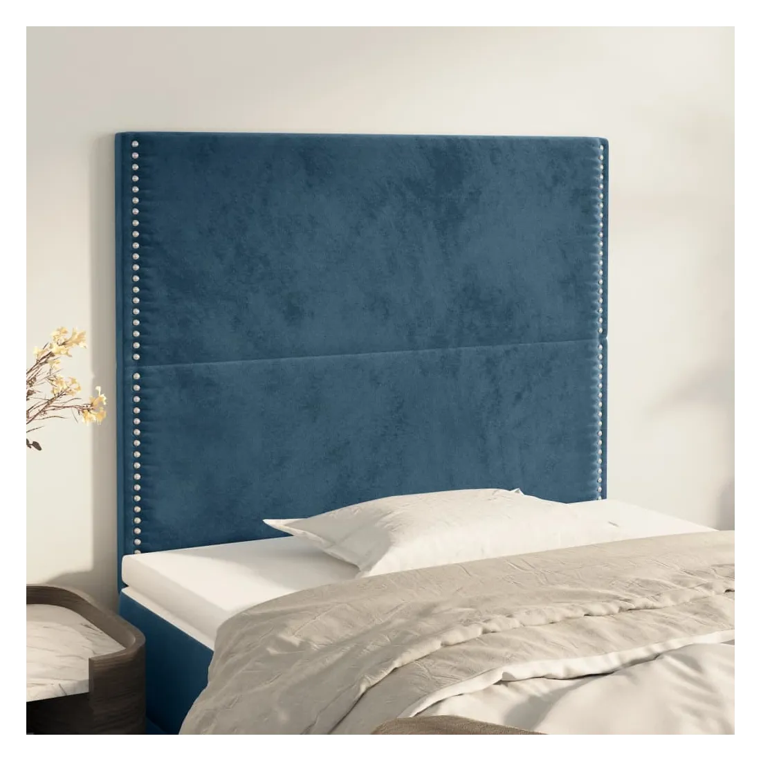 Cette tête de lit classique au design élégant complète parfaitement votre cadre de lit et s'adapte à toutes les chambres. Velours doux : Le velours est un tissu doux et luxueux qui se distingue par ses fibres denses et régulières. Il offre un toucher doux et agréable.Pieds robustes et stables : Les pieds en bois garantissent robustesse et stabilité.Hauteur réglable : La tête de lit est réglable en hauteur selon vos préférences.Excellent soutien : La tête de lit offre un excellent soutien dorsal lorsque vous êtes assis dans votre lit pour lire ou regarder la télévision.Design élégant : Les rivets sur les bords rehaussent la beauté classique de cette tête de lit rembourrée. Remarque :La livraison comprend uniquement la tête de lit. Le cadre de lit et le matelas ne sont pas inclus. Vous pouvez consulter notre boutique pour les cadres et matelas assortis.Chaque produit est livré avec un manuel de montage dans la boîte pour un assemblage facile.