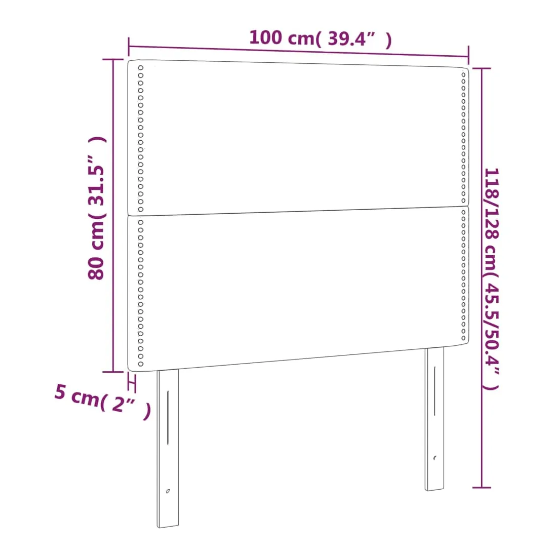 Cette tête de lit classique au design élégant complète parfaitement votre cadre de lit et s'adapte à toutes les chambres. Velours doux : Le velours est un tissu doux et luxueux qui se distingue par ses fibres denses et régulières. Il offre un toucher doux et agréable. Pieds robustes et stables : Les pieds en bois garantissent robustesse et stabilité. Hauteur réglable : La tête de lit est réglable en hauteur selon vos préférences. Excellent soutien : La tête de lit offre un excellent soutien dorsal lorsque vous êtes assis dans votre lit pour lire ou regarder la télévision. Design élégant : Les rivets sur les bords rehaussent la beauté classique de cette tête de lit rembourrée. Remarque : La livraison comprend uniquement la tête de lit. Le cadre de lit et le matelas ne sont pas inclus. V