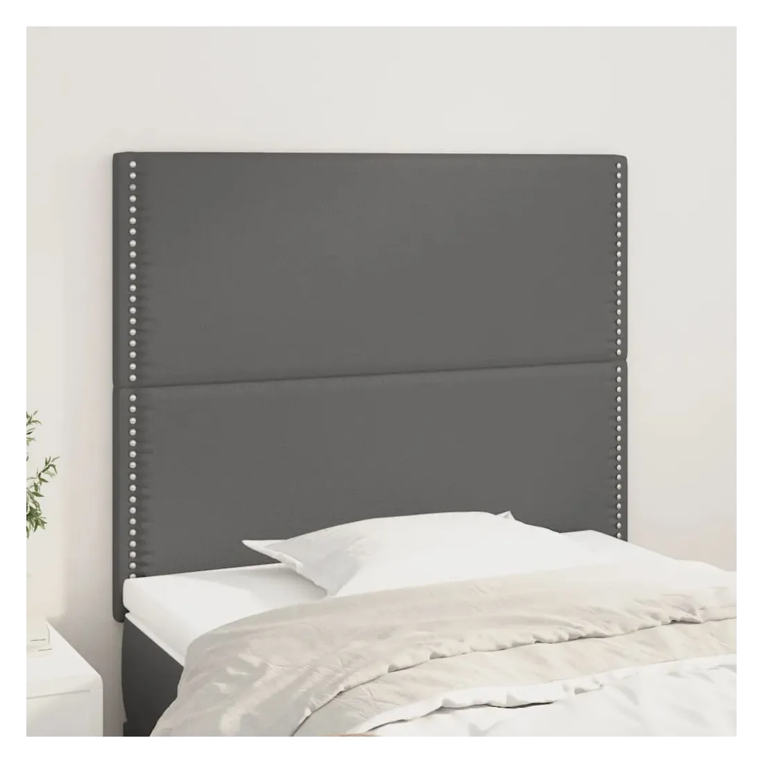 Cette tête de lit classique au design élégant complète parfaitement votre cadre de lit et s'adapte à toutes les chambres. Similicuir durable : Le similicuir de qualité supérieure est un matériau très durable. Résistant aux taches, il est facile à nettoyer avec un chiffon humide. Sa surface lisse lui confère un aspect luxueux et la beauté du cuir véritable.Pieds robustes et stables : Les pieds en bois assurent robustesse et stabilité.Hauteur réglable : La tête de lit est réglable en hauteur selon vos préférences.Excellent soutien : La tête de lit offre un excellent soutien dorsal lorsque vous êtes assis dans votre lit pour lire ou regarder la télévision.Design élégant : Les rivets sur les bords rehaussent la beauté classique de cette tête de lit rembourrée. Remarque :La livraison comprend uniquement la tête de lit. Le cadre de lit et le matelas ne sont pas inclus. Vous pouvez consulter notre boutique pour les cadres et matelas assortis.Chaque produit est livré avec un manuel de montage dans la boîte pour un assemblage facile.