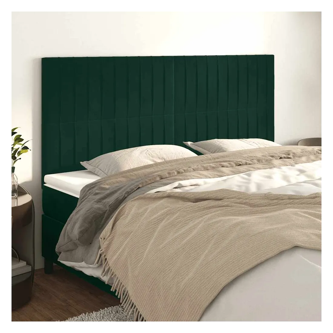 Cette tête de lit classique au design élégant complètera parfaitement votre cadre de lit et conviendra à toutes les chambres. Velours doux : Le velours est un tissu doux et luxueux qui se distingue par ses fibres denses et uniformément coupées et lisses. Le velours offre un toucher doux et agréable.Pieds robustes et stables : Les pieds en bois assurent robustesse et stabilité.Hauteur réglable : La tête de lit est réglable en hauteur selon vos préférences.Excellent soutien : La tête de lit vous offre un excellent soutien dorsal lorsque vous êtes assis dans votre lit pour lire ou regarder la télévision. Remarque :La livraison comprend uniquement la tête de lit. Le cadre de lit et le matelas ne sont pas inclus. Vous pouvez consulter notre boutique pour les cadres et matelas assortis.Chaque produit est livré avec un manuel de montage dans la boîte pour un assemblage facile.
