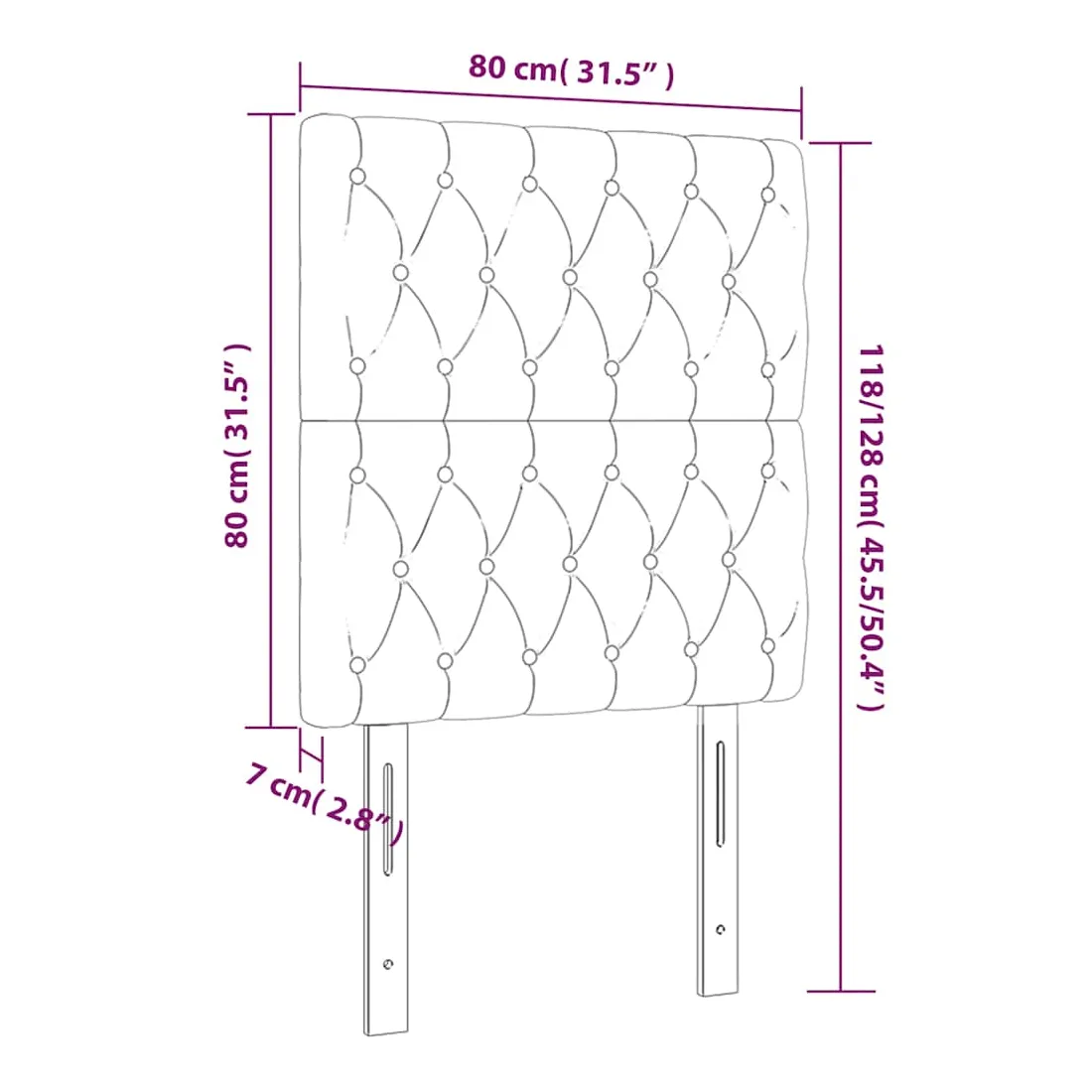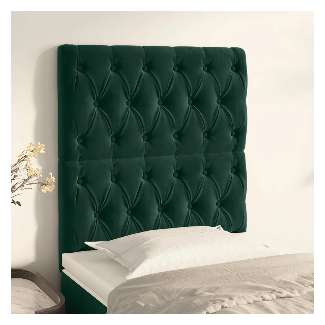 Cette tête de lit classique au design élégant complètera parfaitement votre cadre de lit et conviendra à toutes les chambres. Velours doux : Le velours est un tissu doux et luxueux qui se distingue par ses fibres denses et uniformément coupées et lisses. Le velours offre un toucher doux et agréable.Pieds robustes et stables : Les pieds en bois assurent robustesse et stabilité.Hauteur réglable : La tête de lit est réglable en hauteur selon vos préférences.Excellent soutien : La tête de lit vous offre un excellent soutien dorsal lorsque vous êtes assis dans votre lit pour lire ou regarder la télévision. Remarque :La livraison comprend uniquement la tête de lit. Le cadre de lit et le matelas ne sont pas inclus. Vous pouvez consulter notre boutique pour les cadres et matelas assortis.Chaque produit est livré avec un manuel de montage dans la boîte pour un assemblage facile.