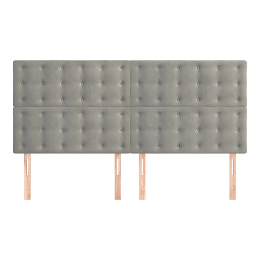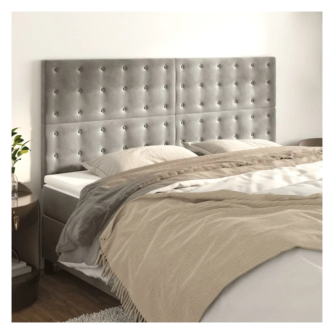 Cette tête de lit classique au design élégant complète parfaitement votre cadre de lit et s'adapte à toutes les chambres. Velours doux : Le velours est un tissu doux et luxueux qui se distingue par ses fibres denses et uniformément coupées et lisses. Le velours offre un toucher doux et agréable.Pieds robustes et stables : Les pieds en bois assurent robustesse et stabilité.Hauteur réglable : La tête de lit est réglable en hauteur selon vos préférences.Excellent soutien : La tête de lit vous offre un excellent soutien dorsal lorsque vous êtes assis dans votre lit pour lire ou regarder la télévision. Remarque :La livraison comprend uniquement la tête de lit. Le cadre de lit et le matelas ne sont pas inclus. Vous pouvez consulter notre boutique pour les cadres et matelas assortis.Chaque produit est livré avec un manuel de montage dans la boîte pour un assemblage facile.