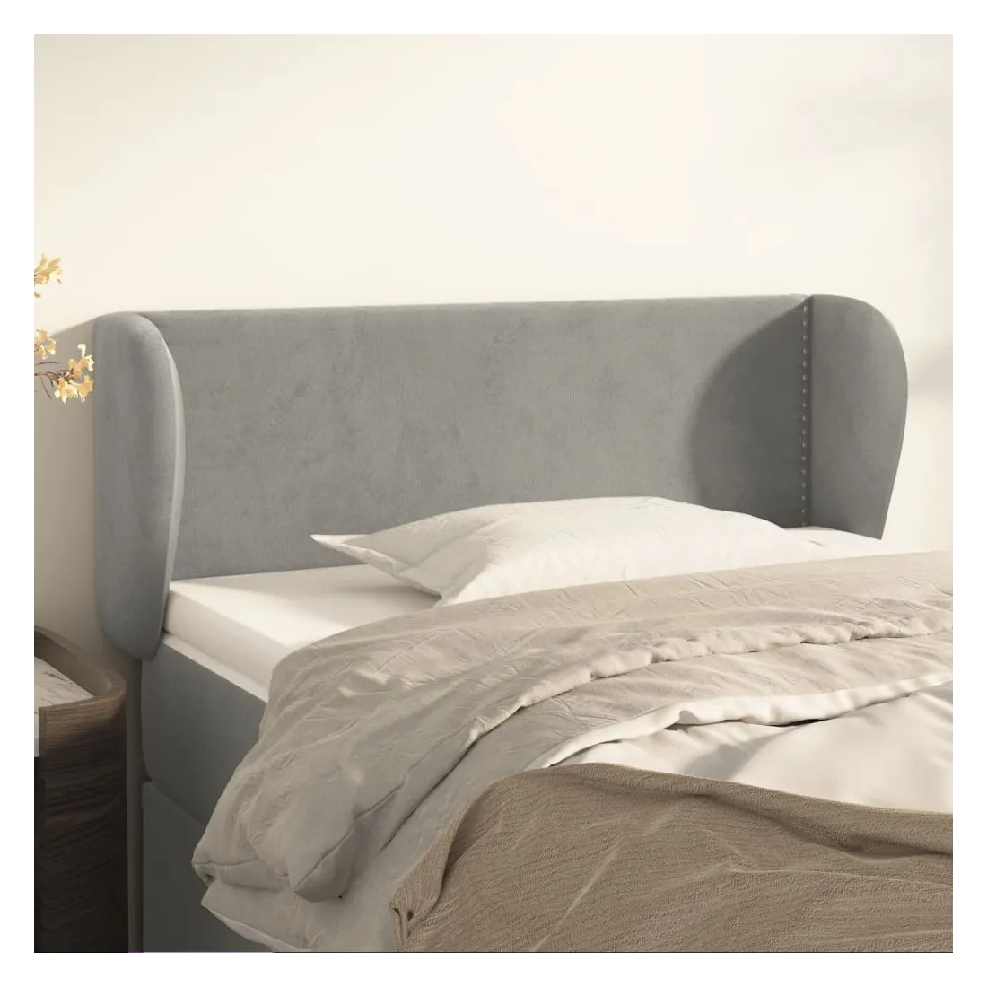 Cette tête de lit avec oreilles classique au design élégant donne à votre cadre de lit un aspect complet et convient à toute chambre à coucher. Velours doux : le velours est un tissu doux et luxueux qui se reconnaît à son tas dense de fibres uniformément coupées qui ont une touche lisse. Le tissu en velours présente un toucher doux distinctif, ce qui le rend confortable au toucher.Pieds robustes et stables : les pieds en bois assurent la robustesse et la stabilité.Hauteur réglable : la tête de lit est réglable en hauteur selon vos préférences.Excellent soutien : la tête de lit vous offre un excellent soutien du dos lorsque vous êtes assis dans votre lit pour lire ou regarder la télévision.Design élégant : les rivets le long des bords augmentent la beauté classique de la tête de lit rembourrée. Remarque :La livraison comprend uniquement la tête de lit. Le cadre de lit et le matelas ne sont pas inclus. Vous pouvez consulter notre boutique pour les cadres et matelas assortis.Chaque produit est livré avec un manuel de montage dans la boîte pour un montage facile.