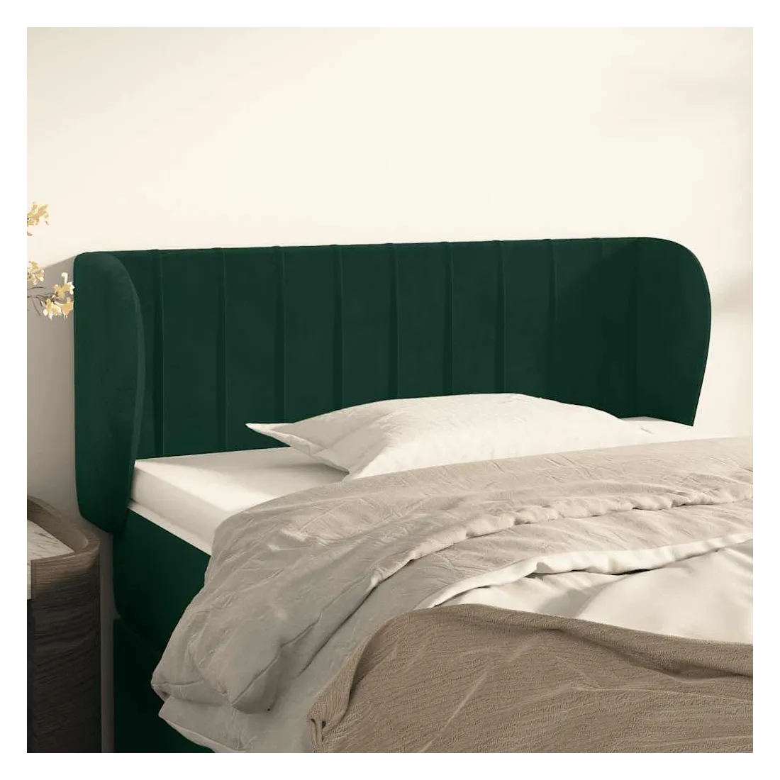 Cette tête de lit avec oreilles classique au design élégant donne à votre cadre de lit un aspect complet et convient à toute chambre à coucher. Velours doux : le velours est un tissu doux et luxueux qui se reconnaît à son tas dense de fibres uniformément coupées qui ont une touche lisse. Le tissu en velours présente un toucher doux distinctif, ce qui le rend confortable au toucher.Pieds robustes et stables : les pieds en bois assurent la robustesse et la stabilité.Hauteur réglable : la tête de lit est réglable en hauteur selon vos préférences.Excellent soutien : la tête de lit vous offre un excellent soutien du dos lorsque vous êtes assis dans votre lit pour lire ou regarder la télévision. Remarque :La livraison comprend uniquement la tête de lit. Le cadre de lit et le matelas ne sont pas inclus. Vous pouvez consulter notre boutique pour les cadres et matelas assortis.Chaque produit est livré avec un manuel de montage dans la boîte pour un montage facile.