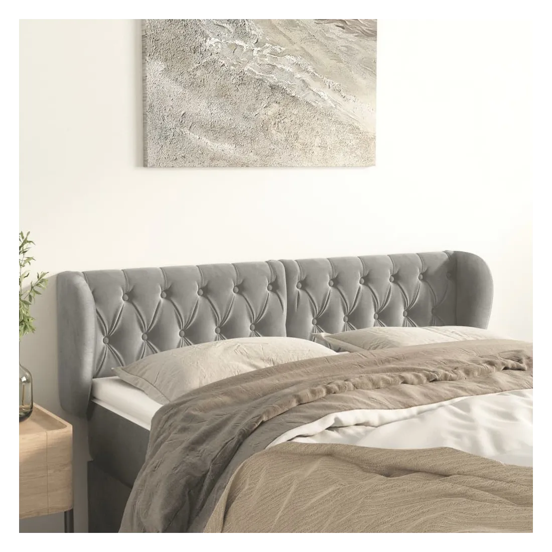 Tête de lit avec oreilles Gris clair 147x23x78/88 cm Velours