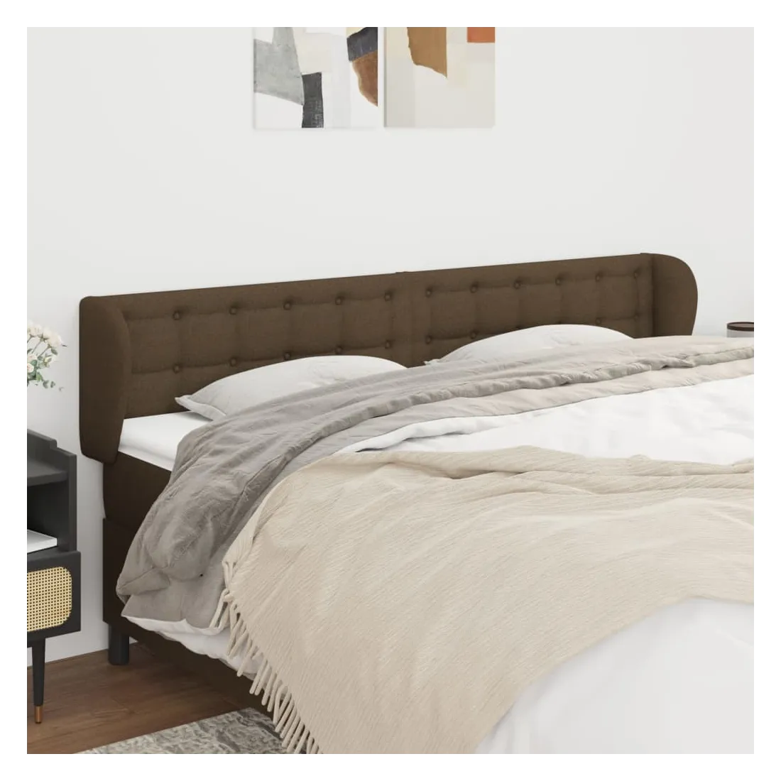 Tête de lit avec oreilles Marron foncé 183x23x78/88 cm Tissu