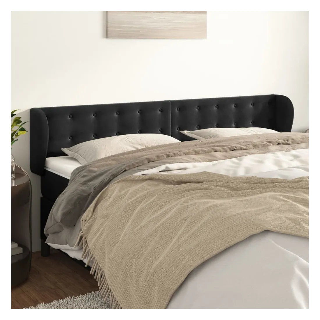 Tête de lit avec oreilles Noir 203x23x78/88 cm Velours