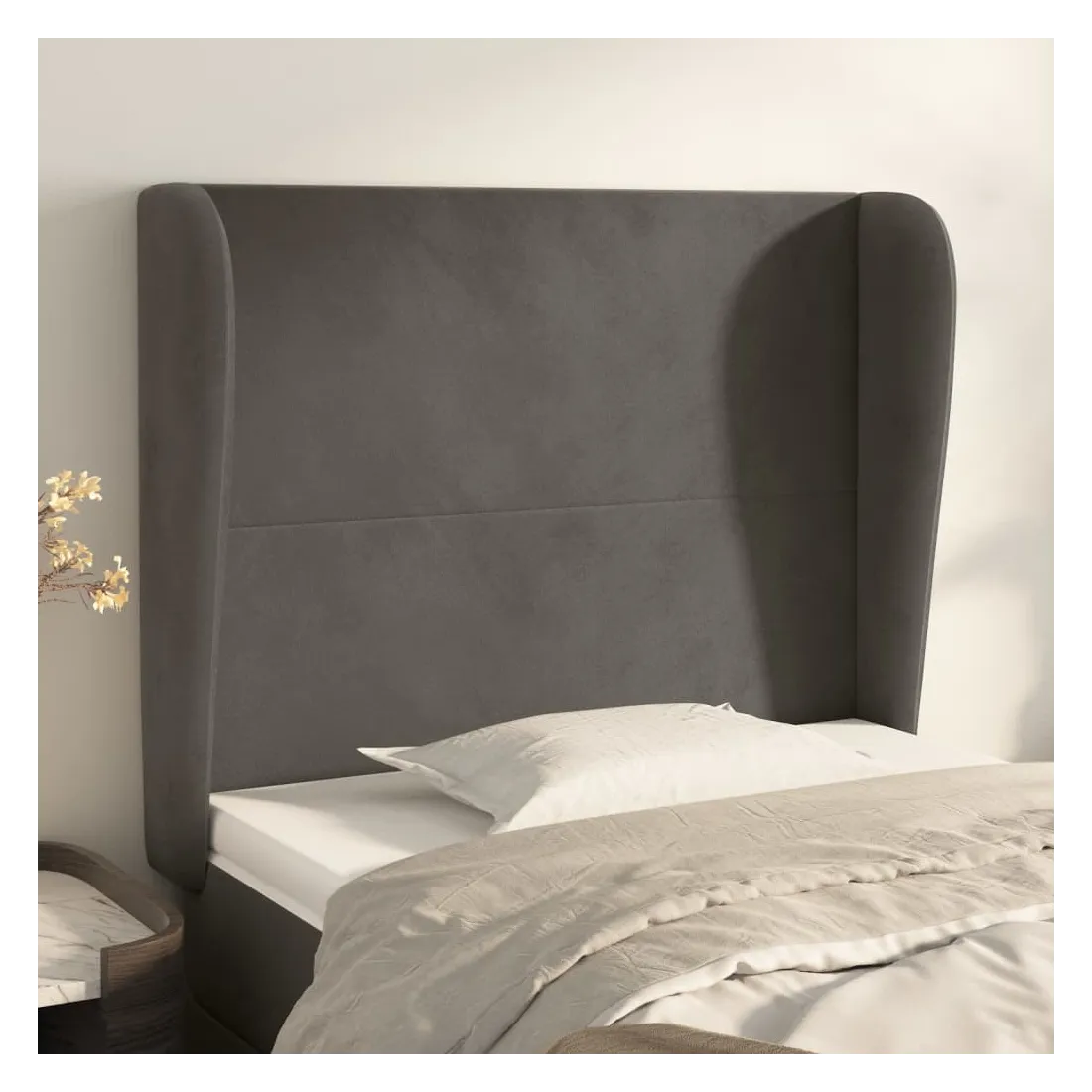 Tête de lit avec oreilles Gris foncé 103x23x118/128 cm Velours
