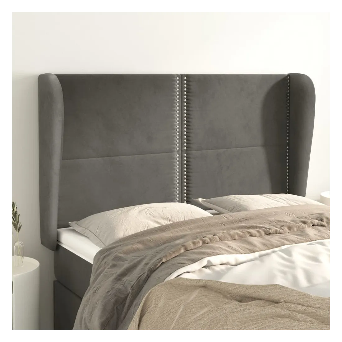 Tête de lit avec oreilles Gris foncé 147x23x118/128 cm Velours