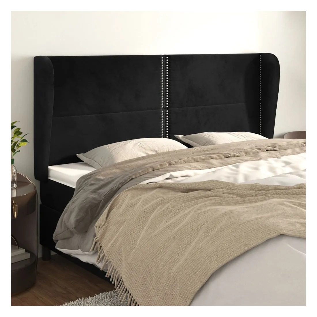Tête de lit avec oreilles Noir 163x23x118/128 cm Velours