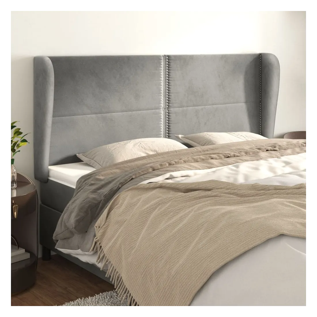 Cette tête de lit avec oreilles classique au design élégant donne à votre cadre de lit un aspect complet et convient à toute chambre à coucher. Velours doux : le velours est un tissu doux et luxueux qui se reconnaît à son tas dense de fibres uniformément coupées qui ont une touche lisse. Le tissu en velours présente un toucher doux distinctif, ce qui le rend confortable au toucher.Des pieds robustes et stables : les pieds en bois assurent la robustesse et la stabilité.Hauteur réglable : la tête de lit est réglable en hauteur selon vos préférences.Excellent soutien : la tête de lit vous offre un excellent soutien du dos lorsque vous êtes assis dans votre lit pour lire ou regarder la télévision. Remarque :La livraison comprend uniquement la tête de lit. Le cadre de lit et le matelas ne sont pas inclus. Vous pouvez consulter notre boutique pour les cadres et matelas assortis.Chaque produit est livré avec un manuel de montage dans la boîte pour un montage facile.