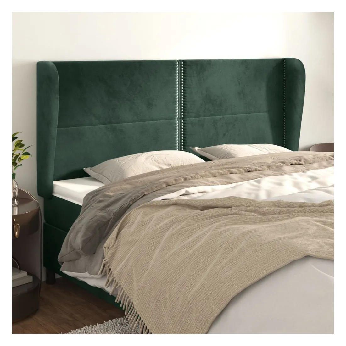 Tête de lit avec oreilles Vert foncé 203x23x118/128 cm Velours
