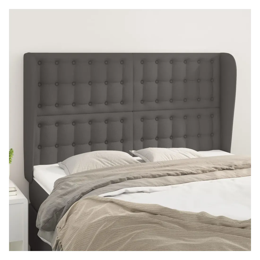 Tête de lit avec oreilles Gris 147x23x118/128 cm Similicuir