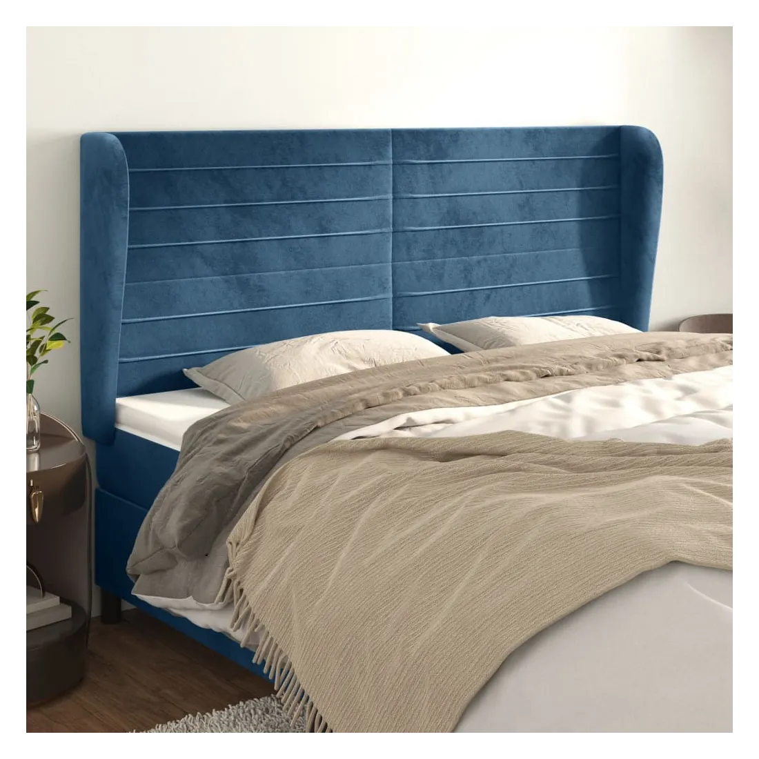 Tête de lit avec oreilles Bleu foncé 183x23x118/128 cm Velours