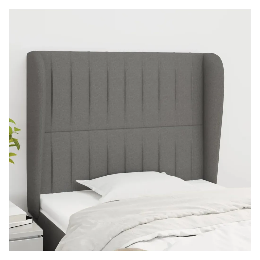 Tête de lit avec oreilles Gris foncé 103x23x118/128 cm Tissu