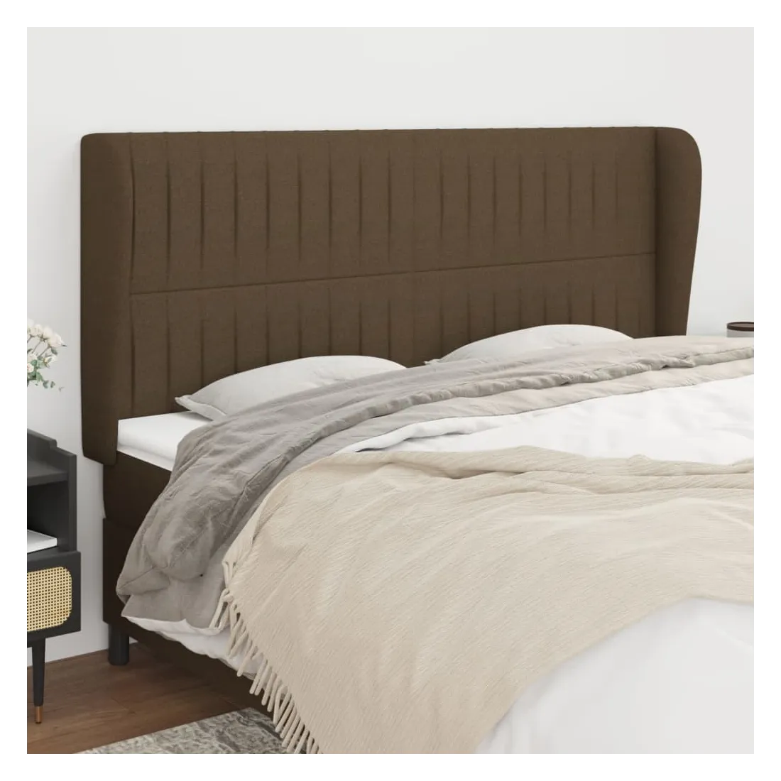 Tête de lit avec oreilles Marron foncé 163x23x118/128 cm Tissu