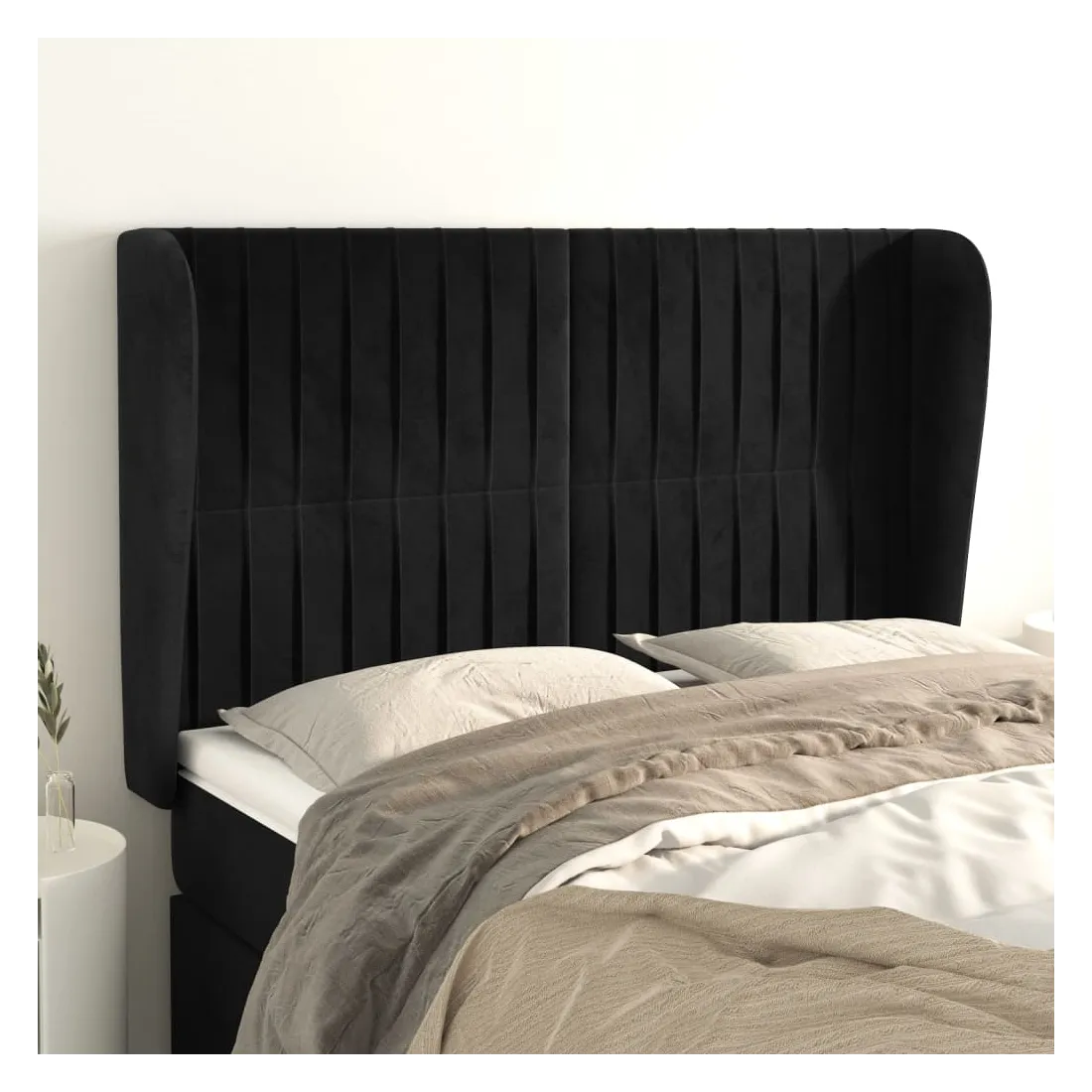 Cette tête de lit avec oreilles classique au design élégant donne à votre cadre de lit un aspect complet et convient à toute chambre à coucher. Velours doux : le velours est un tissu doux et luxueux qui se reconnaît à son tas dense de fibres uniformément coupées qui ont une touche lisse. Le tissu en velours présente un toucher doux distinctif, ce qui le rend confortable au toucher.Pieds robustes et stables : les pieds en bois assurent la robustesse et la stabilité.Hauteur réglable : la tête de lit est réglable en hauteur selon vos préférences.Excellent soutien : la tête de lit vous offre un excellent soutien du dos lorsque vous êtes assis dans votre lit pour lire ou regarder la télévision. Remarque :La livraison comprend uniquement la tête de lit. Le cadre de lit et le matelas ne sont pas inclus. Vous pouvez consulter notre boutique pour les cadres et matelas assortis.Chaque produit est livré avec un manuel de montage dans la boîte pour un montage facile.
