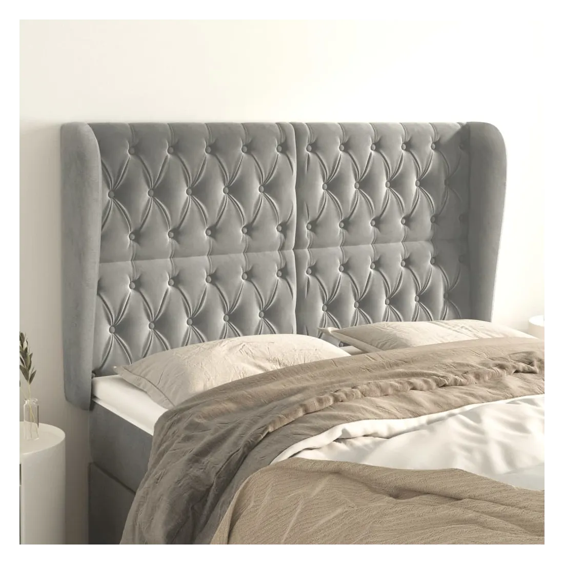 Tête de lit avec oreilles Gris clair 147x23x118/128 cm Velours