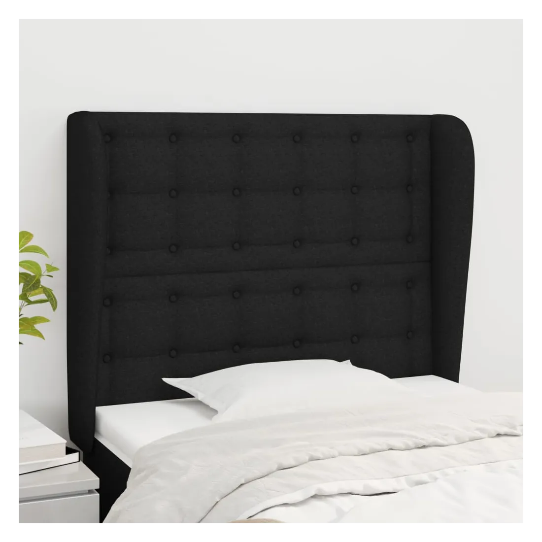 Tête de lit avec oreilles Noir 93x23x118/128 cm Tissu