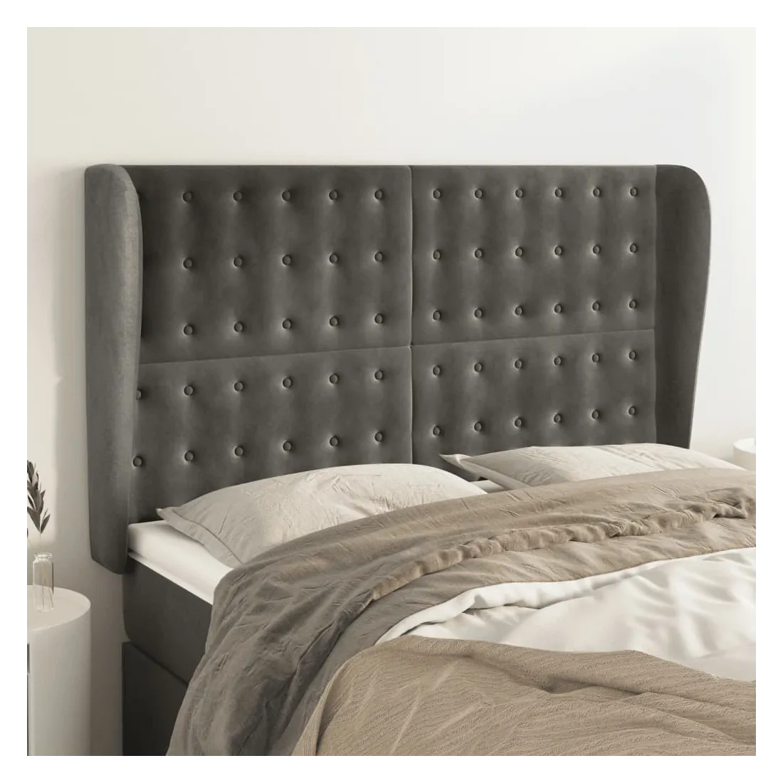 Tête de lit avec oreilles Gris foncé 147x23x118/128 cm Velours