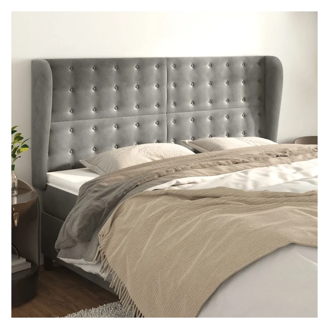 Tête de lit avec oreilles Gris clair 163x23x118/128 cm Velours