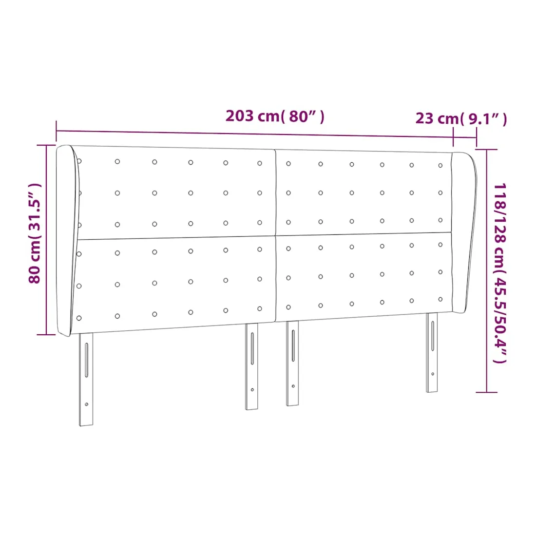 203 x 23 x 118/128 cm