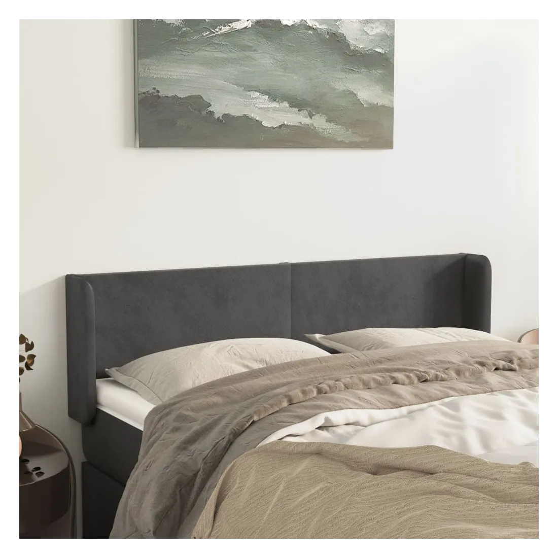 Tête de lit avec oreilles Gris foncé 147x16x78/88 cm Velours
