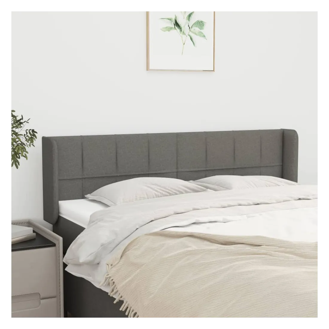 Tête de lit avec oreilles Gris foncé 147x16x78/88 cm Tissu
