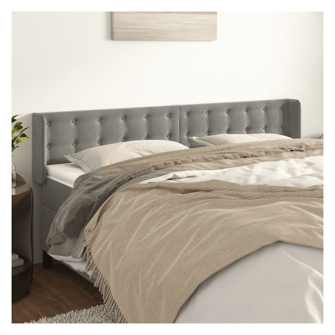 Cette tête de lit avec oreilles classique au design élégant donne à votre cadre de lit un aspect complet et convient à toute chambre à coucher. Velours doux : le velours est un tissu doux et luxueux qui se reconnaît à son tas dense de fibres uniformément coupées qui ont une touche lisse. Le tissu en velours présente un toucher doux distinctif, ce qui le rend confortable au toucher.Pieds robustes et stables : les pieds en bois assurent la robustesse et la stabilité.Hauteur réglable : la tête de lit est réglable en hauteur selon vos préférences.Excellent soutien : la tête de lit vous offre un excellent soutien du dos lorsque vous êtes assis dans votre lit pour lire ou regarder la télévision. Remarque :La livraison comprend uniquement la tête de lit. Le cadre de lit et le matelas ne sont pas inclus. Vous pouvez consulter notre boutique pour les cadres et matelas assortis.Chaque produit est livré avec un manuel de montage dans la boîte pour un montage facile.