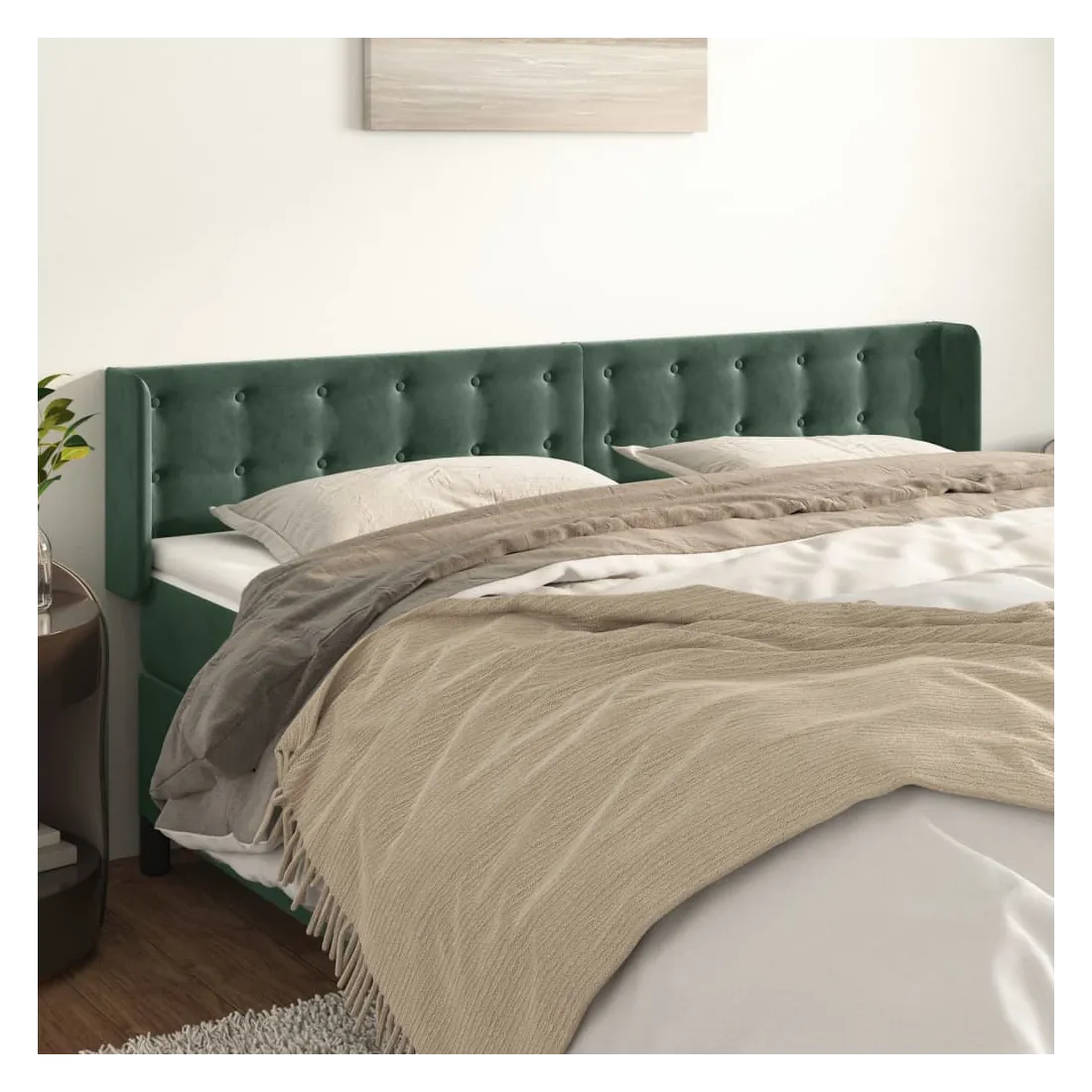 Tête de lit avec oreilles Vert foncé 163x16x78/88 cm Velours