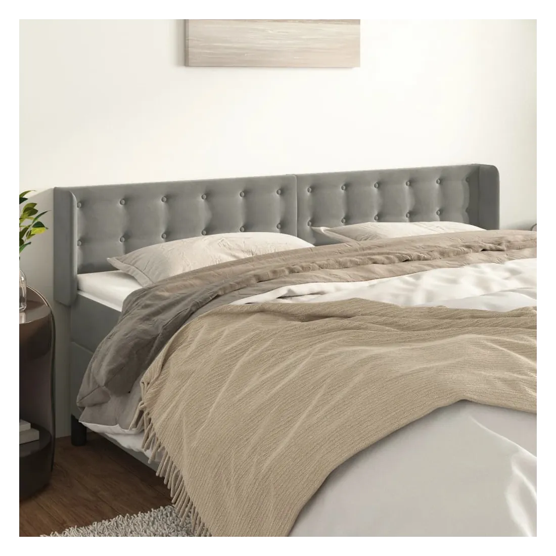 Tête de lit avec oreilles Gris clair 203x16x78/88 cm Velours