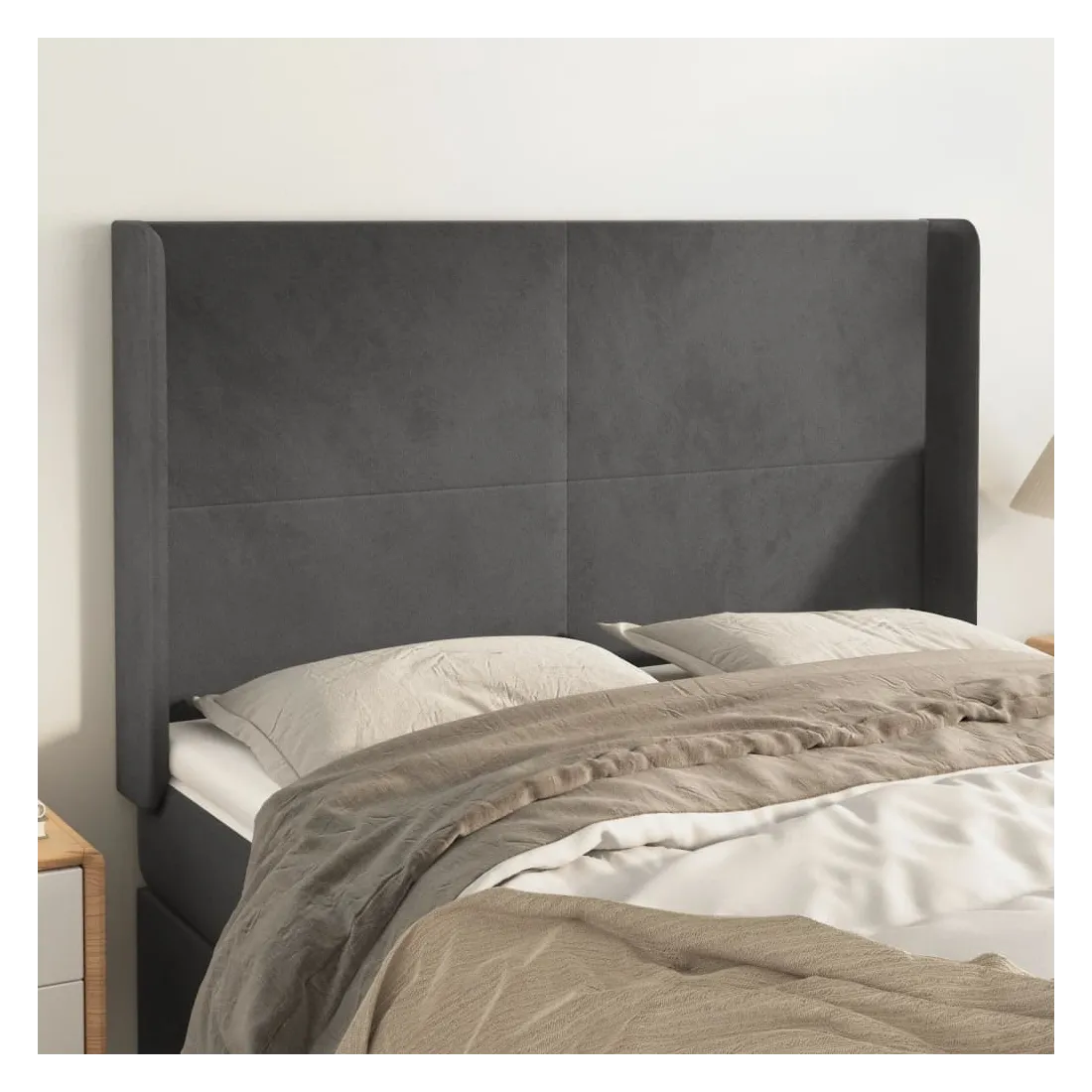 Tête de lit avec oreilles Gris foncé 147x16x118/128 cm Velours