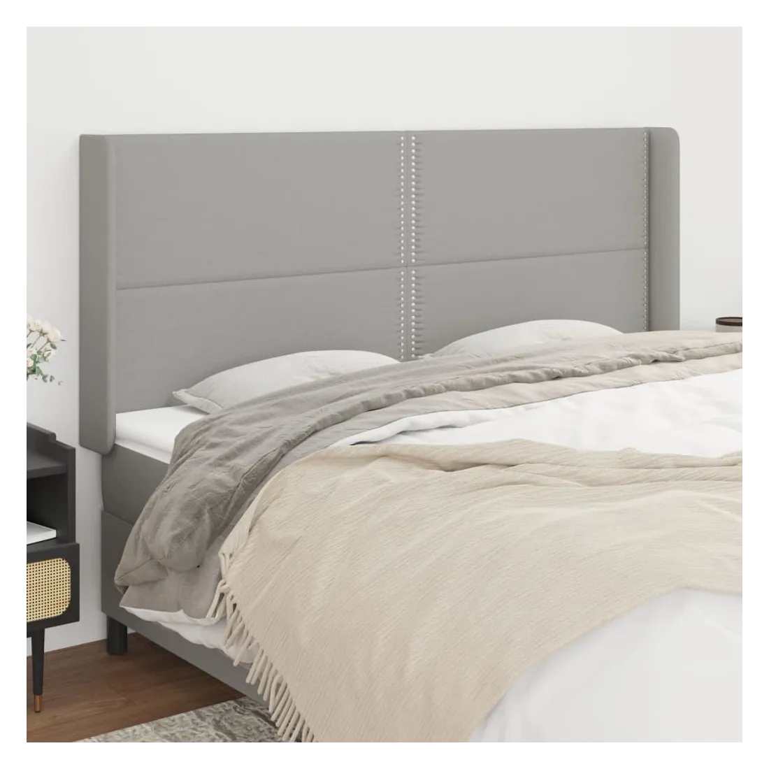 Tête de lit avec oreilles Gris clair 183x16x118/128 cm Tissu