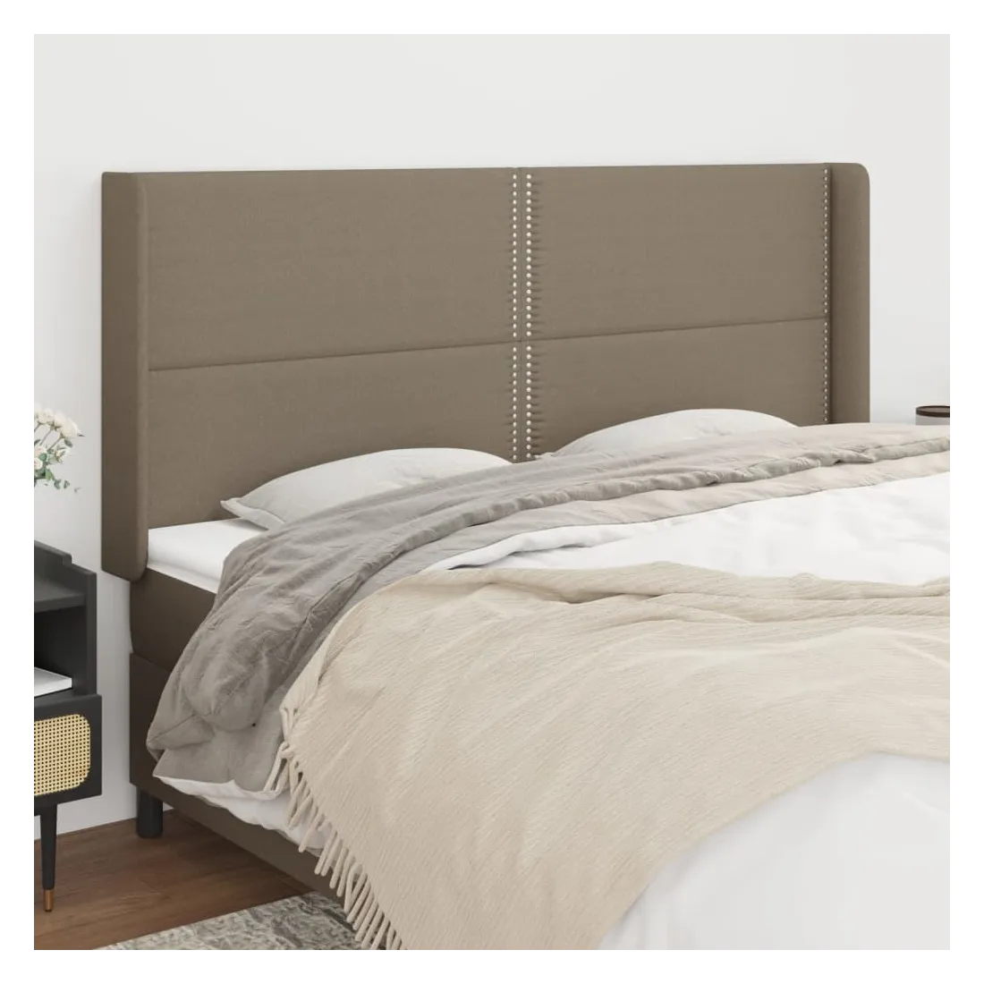 Cette tête de lit avec oreilles classique au design élégant donne à votre cadre de lit un aspect complet et convient à toute chambre à coucher. Tissu durable : le tissu présente un aspect simple et épuré, et il est respirant et durable.Pieds robustes et stables : les pieds en bois assurent la robustesse et la stabilité.Hauteur réglable : la tête de lit est réglable en hauteur selon vos préférences.Excellent soutien : la tête de lit vous offre un excellent soutien du dos lorsque vous êtes assis dans votre lit pour lire ou regarder la télévision. Remarque :La livraison comprend uniquement la tête de lit. Le cadre de lit et le matelas ne sont pas inclus. Vous pouvez consulter notre boutique pour les cadres et matelas assortis.Chaque produit est livré avec un manuel de montage dans la boîte pour un montage facile.