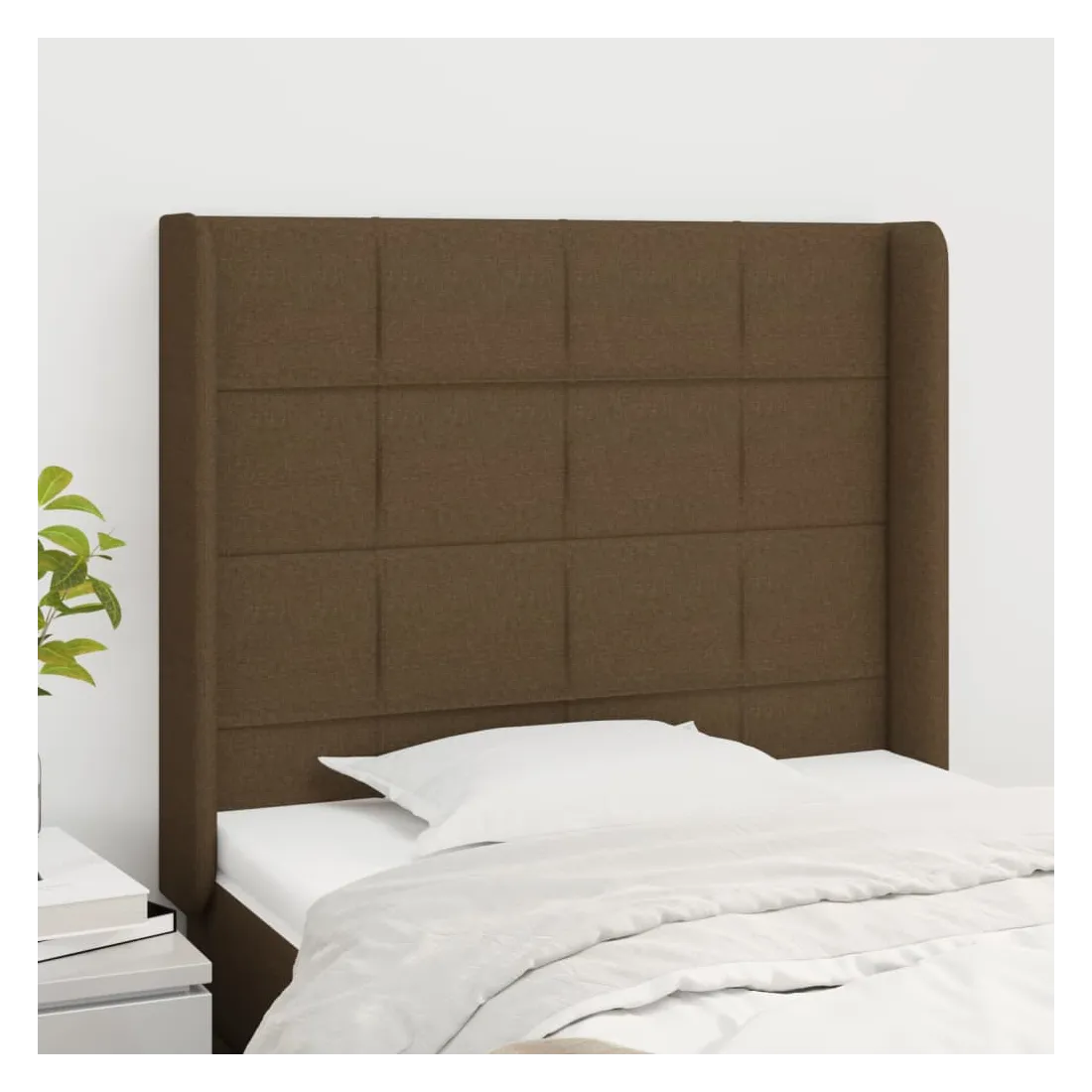 Tête de lit avec oreilles Marron foncé 83x16x118/128 cm Tissu