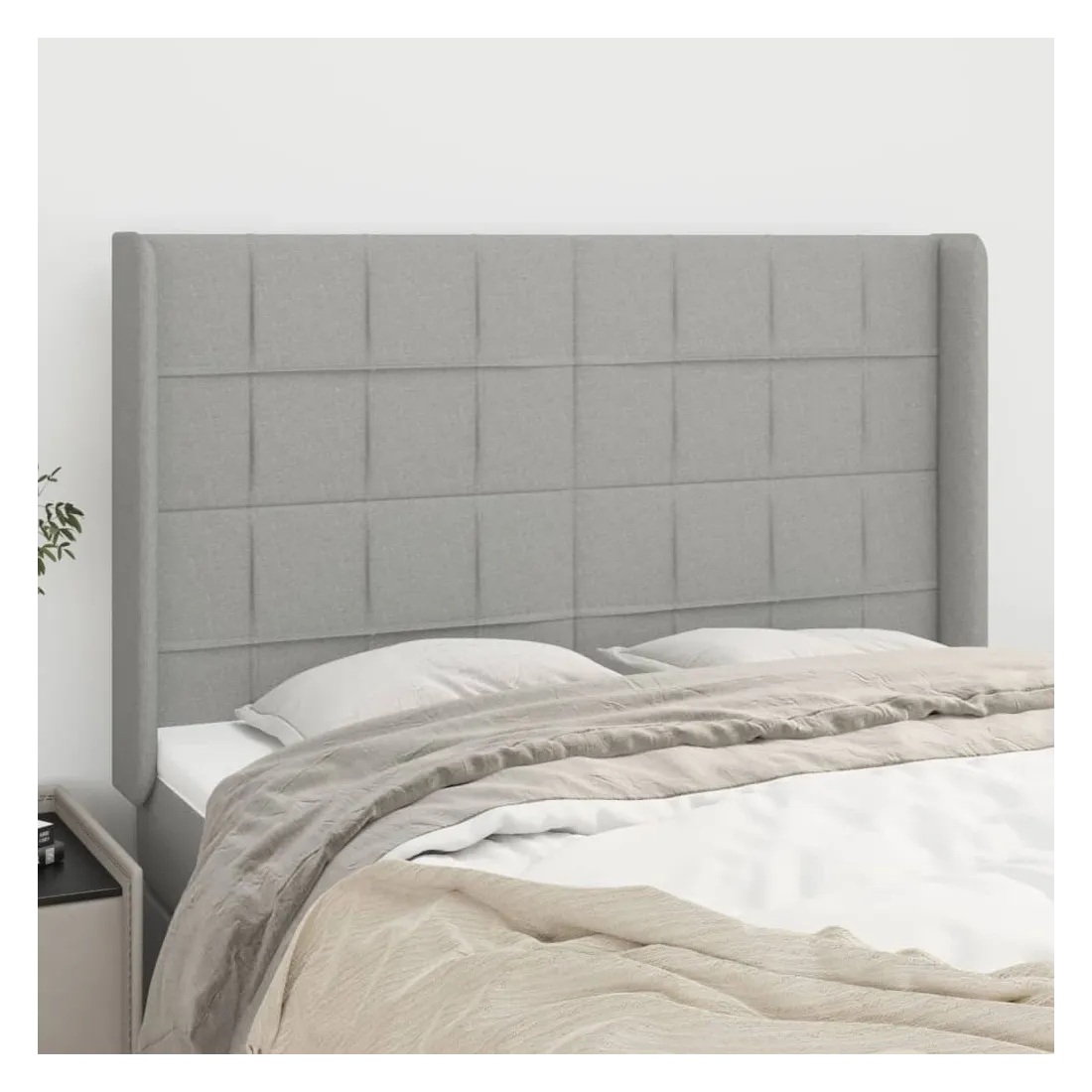 Cette tête de lit avec oreilles classique au design élégant donne à votre cadre de lit un aspect complet et convient à toute chambre à coucher. Tissu durable : le tissu présente un aspect simple et épuré, et il est respirant et durable.Pieds robustes et stables : les pieds en bois assurent la robustesse et la stabilité.Hauteur réglable : la tête de lit est réglable en hauteur selon vos préférences.Excellent soutien : la tête de lit vous offre un excellent soutien du dos lorsque vous êtes assis dans votre lit pour lire ou regarder la télévision. Remarque :La livraison comprend uniquement la tête de lit. Le cadre de lit et le matelas ne sont pas inclus. Vous pouvez consulter notre boutique pour les cadres et matelas assortis.Chaque produit est livré avec un manuel de montage dans la boîte pour un montage facile.