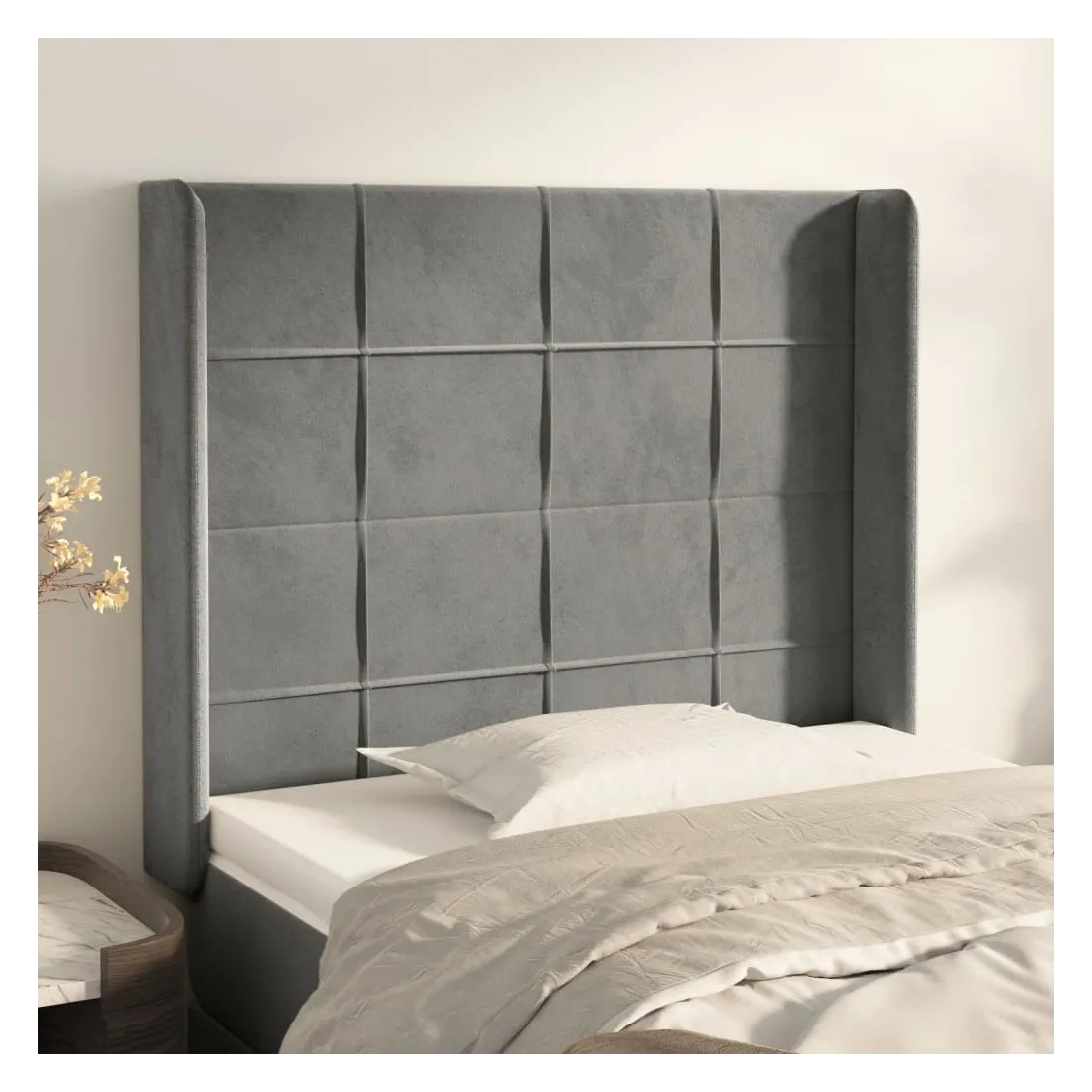 Cette tête de lit avec oreilles classique au design élégant donne à votre cadre de lit un aspect complet et convient à toute chambre à coucher. Velours doux : le velours est un tissu doux et luxueux qui se reconnaît à son tas dense de fibres uniformément coupées qui ont une touche lisse. Le tissu en velours présente un toucher doux distinctif, ce qui le rend confortable au toucher.Pieds robustes et stables : les pieds en bois assurent la robustesse et la stabilité.Hauteur réglable : la tête de lit est réglable en hauteur selon vos préférences.Excellent soutien : la tête de lit vous offre un excellent soutien du dos lorsque vous êtes assis dans votre lit pour lire ou regarder la télévision. Remarque :La livraison comprend uniquement la tête de lit. Le cadre de lit et le matelas ne sont pas inclus. Vous pouvez consulter notre boutique pour les cadres et matelas assortis.Chaque produit est livré avec un manuel de montage dans la boîte pour un montage facile.