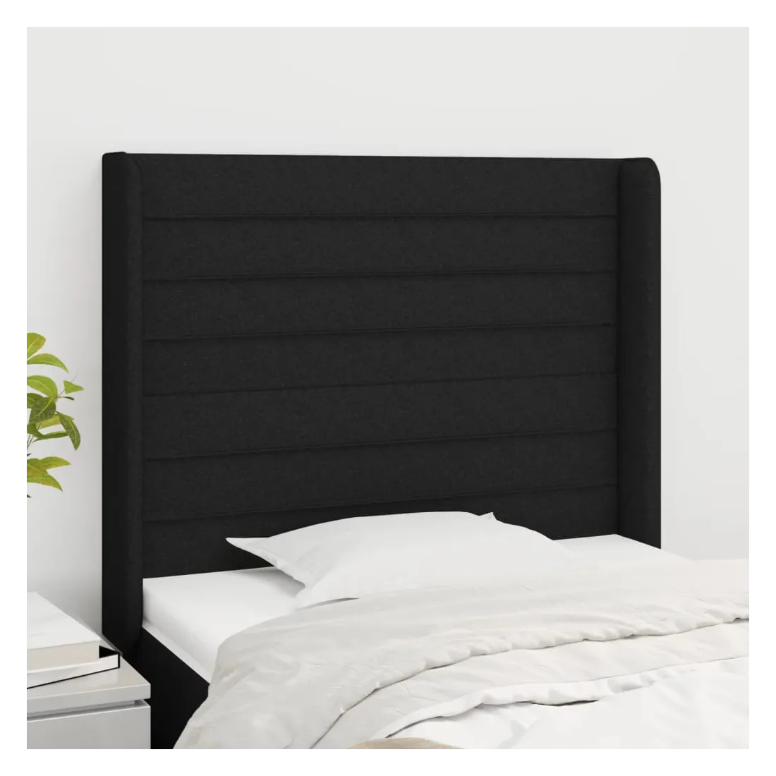 Tête de lit avec oreilles Noir 83x16x118/128 cm Tissu
