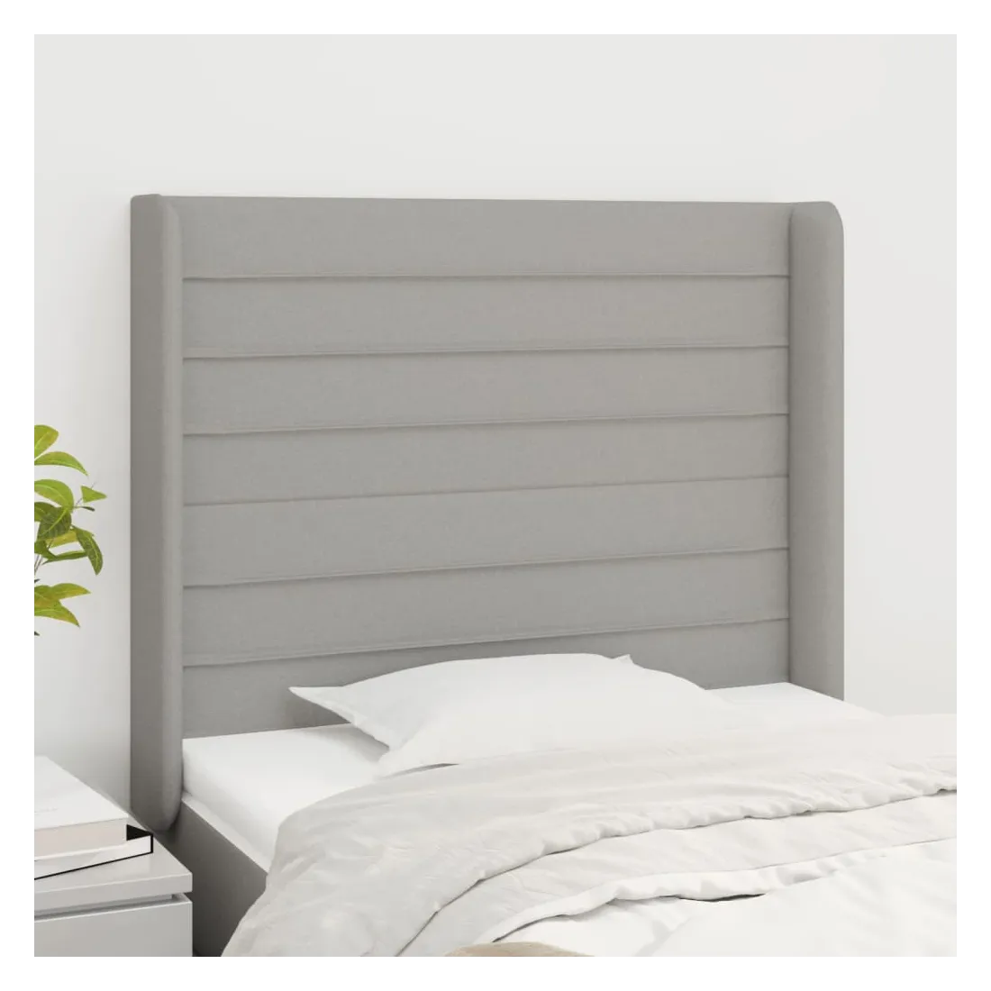 Cette tête de lit avec oreilles classique au design élégant donne à votre cadre de lit un aspect complet et convient à toute chambre à coucher. Tissu durable : le tissu présente un aspect simple et épuré, et il est respirant et durable.Pieds robustes et stables : les pieds en bois assurent la robustesse et la stabilité.Hauteur réglable : la tête de lit est réglable en hauteur selon vos préférences.Excellent soutien : la tête de lit vous offre un excellent soutien du dos lorsque vous êtes assis dans votre lit pour lire ou regarder la télévision. Remarque :La livraison comprend uniquement la tête de lit. Le cadre de lit et le matelas ne sont pas inclus. Vous pouvez consulter notre boutique pour les cadres et matelas assortis.Chaque produit est livré avec un manuel de montage dans la boîte pour un montage facile.