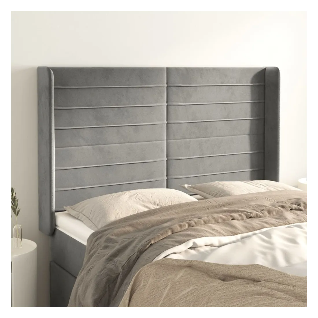 Tête de lit avec oreilles Gris clair 147x16x118/128 cm Velours
