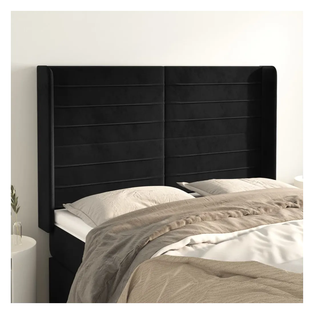 Tête de lit avec oreilles Noir 147x16x118/128 cm Velours