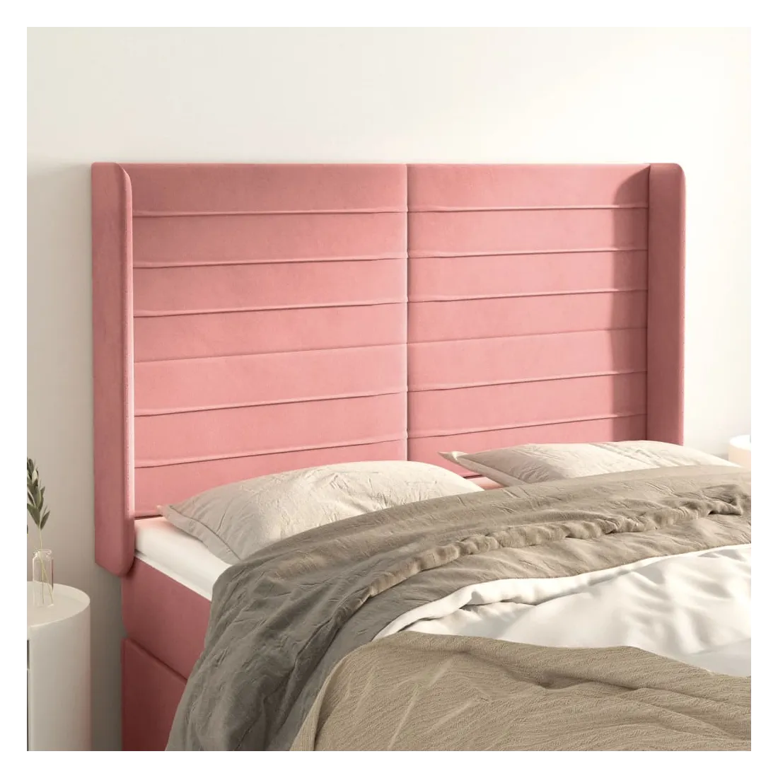 Tête de lit avec oreilles Rose 147x16x118/128 cm Velours