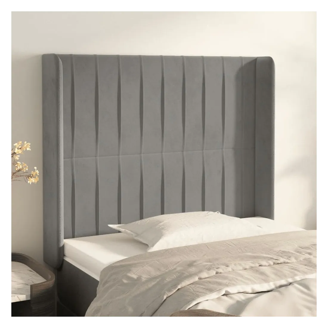 Tête de lit avec oreilles Gris clair 103x16x118/128 cm Velours
