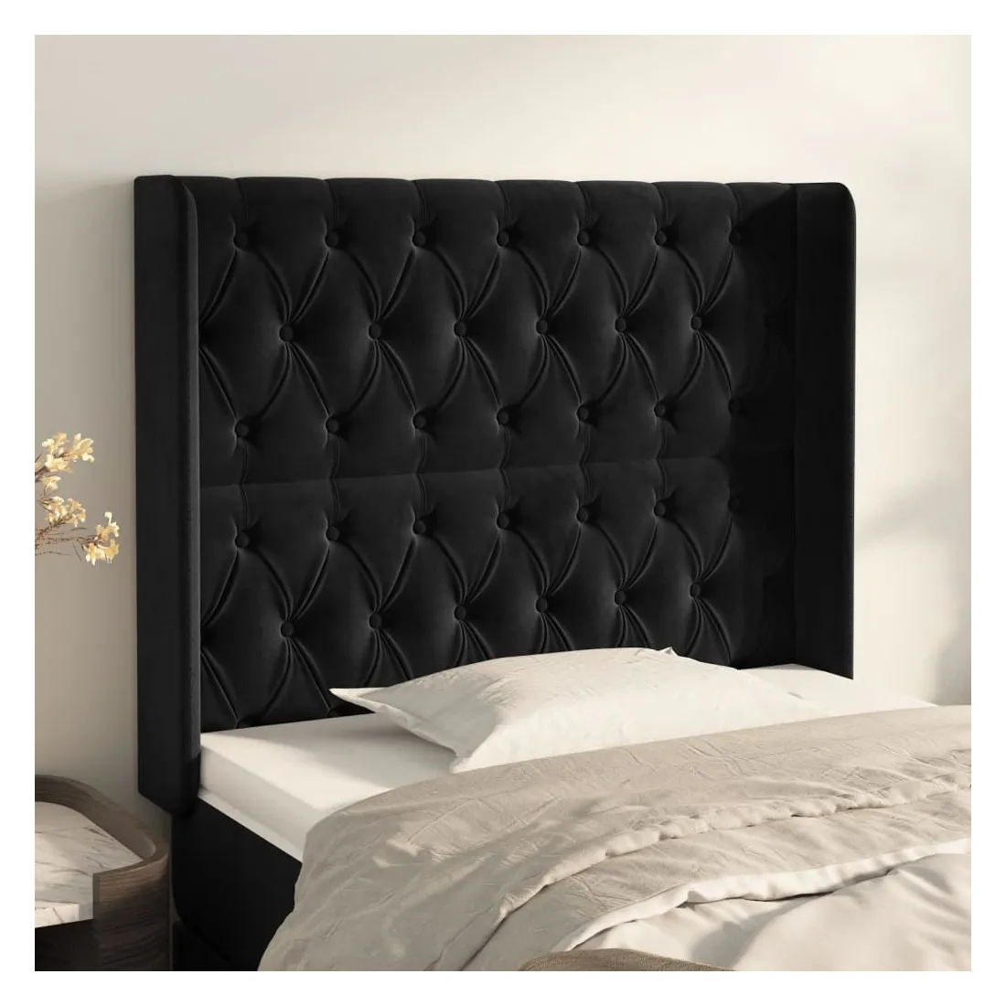 Tête de lit avec oreilles Noir 103x16x118/128 cm Velours