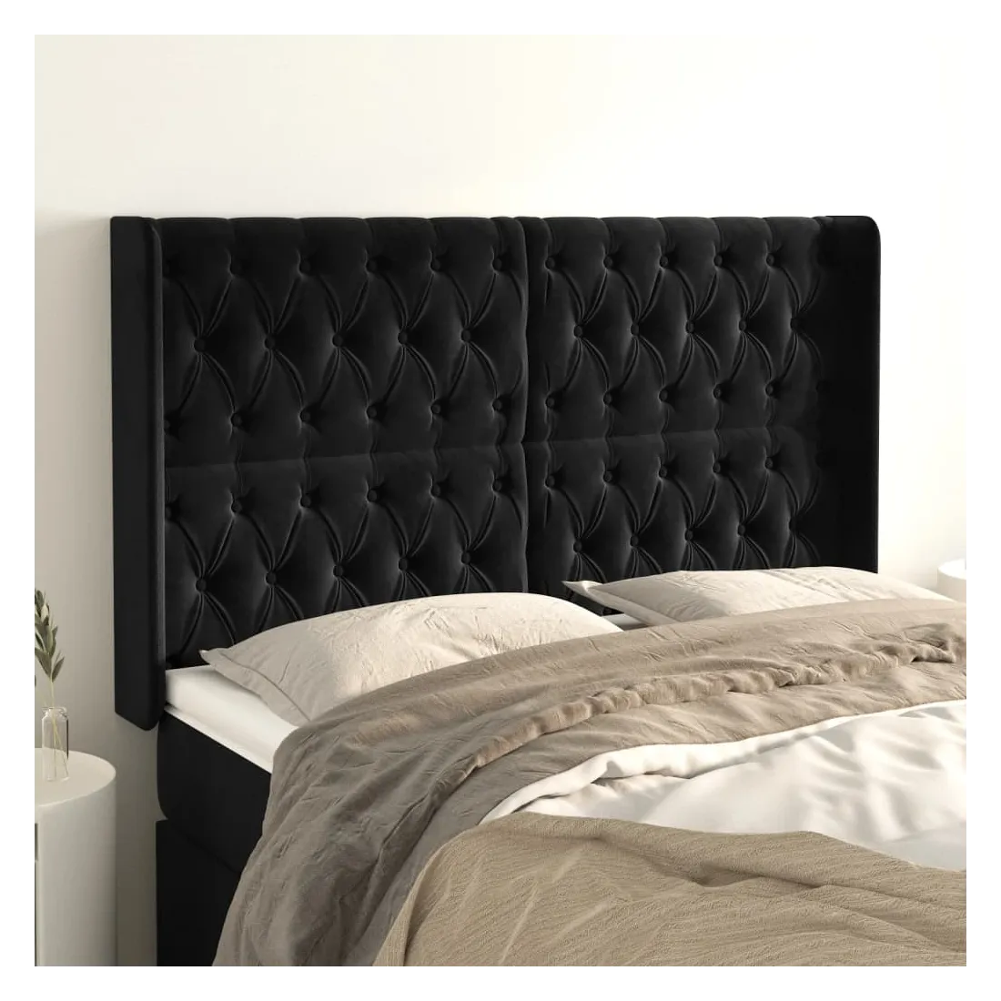 Cette tête de lit avec oreilles classique au design élégant donne à votre cadre de lit un aspect complet et convient à toute chambre à coucher. Velours doux : le velours est un tissu doux et luxueux qui se reconnaît à son tas dense de fibres uniformément coupées qui ont une touche lisse. Le tissu en velours présente un toucher doux distinctif, ce qui le rend confortable au toucher.Pieds robustes et stables : les pieds en bois assurent la robustesse et la stabilité.Hauteur réglable : la tête de lit est réglable en hauteur selon vos préférences.Excellent soutien : la tête de lit vous offre un excellent soutien du dos lorsque vous êtes assis dans votre lit pour lire ou regarder la télévision. Remarque :La livraison comprend uniquement la tête de lit. Le cadre de lit et le matelas ne sont pas inclus. Vous pouvez consulter notre boutique pour les cadres et matelas assortis.Chaque produit est livré avec un manuel de montage dans la boîte pour un montage facile.