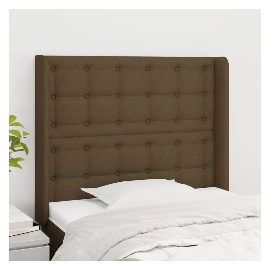 Tête de lit avec oreilles Marron foncé 103x16x118/128 cm Tissu