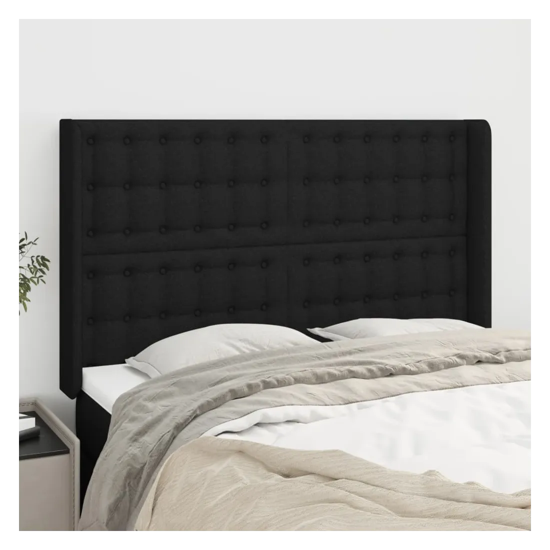 Tête de lit avec oreilles Noir 147x16x118/128 cm Tissu