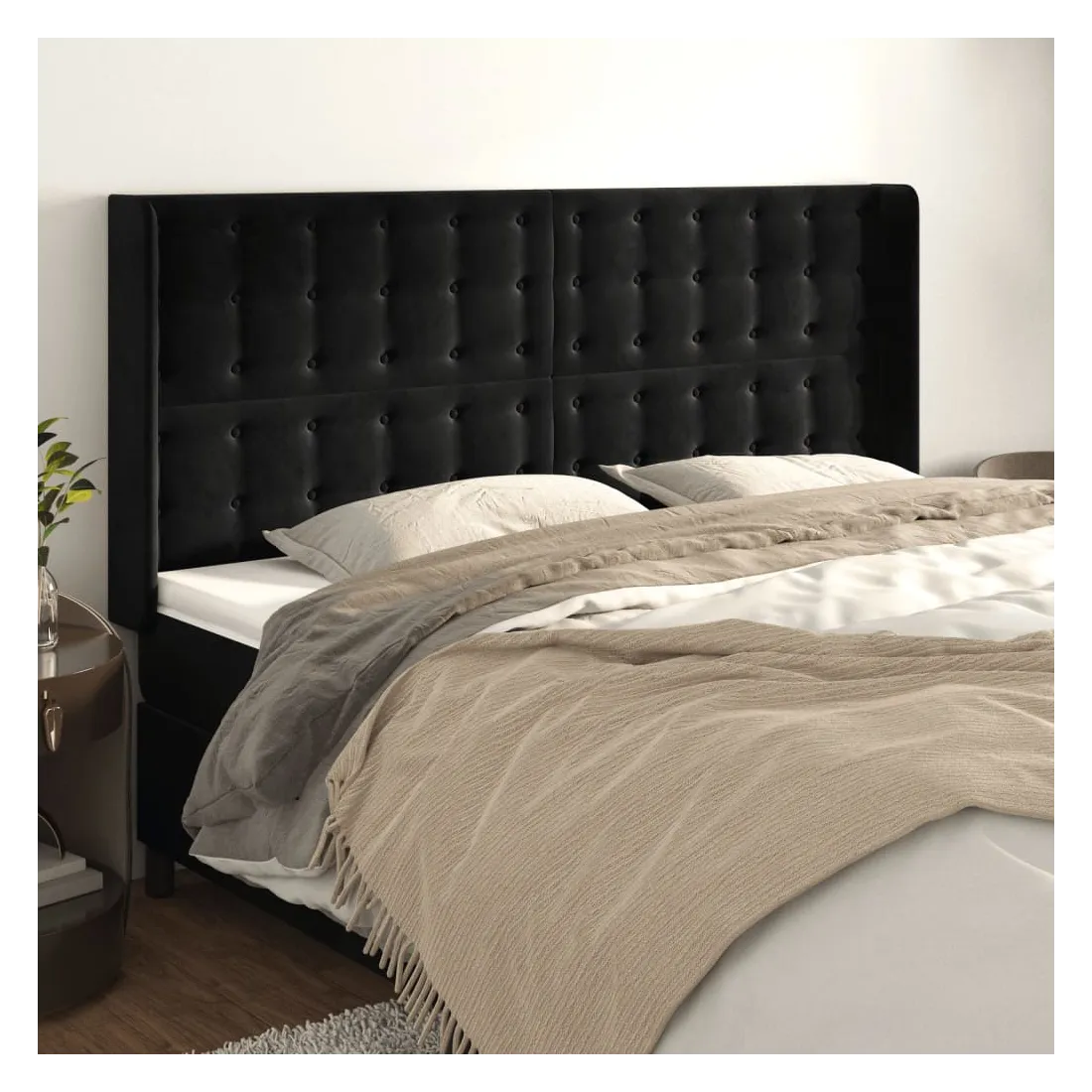 Tête de lit avec oreilles Noir 183x16x118/128 cm Velours