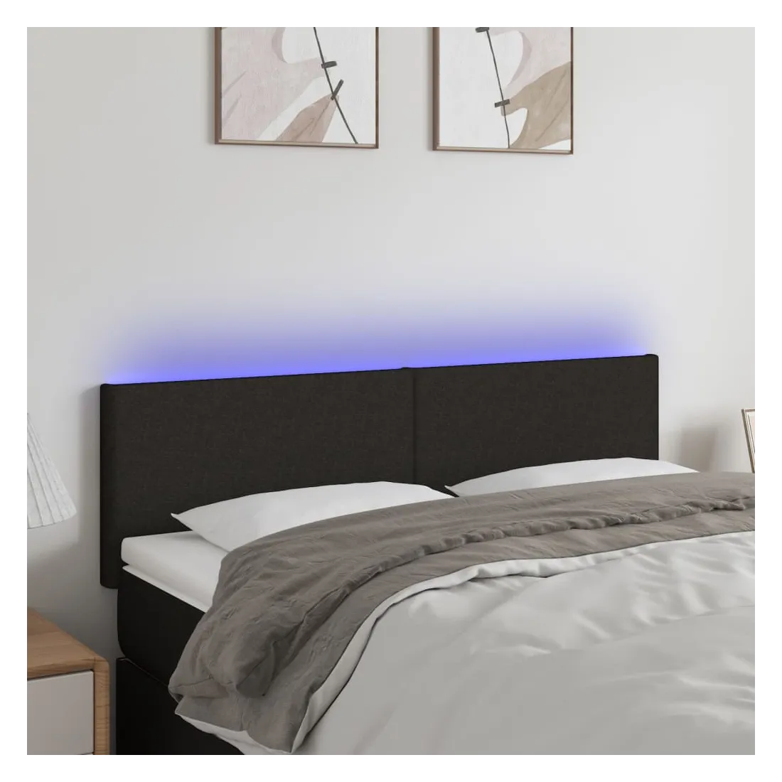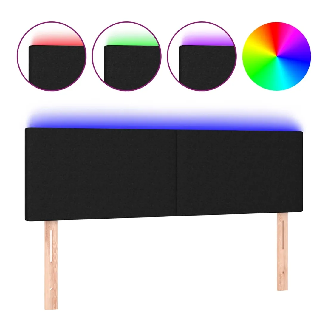 Tête de lit à LED Noir 144x5x78/88 cm Tissu