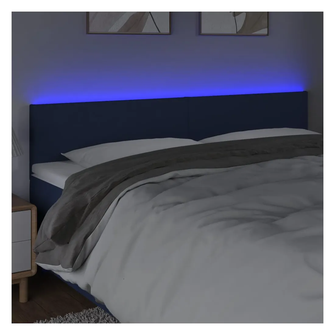 Cette tête de lit à LED classique, au design élégant, donne à votre cadre de lit une touche de modernité étonnante et convient parfaitement à toute chambre à coucher. Tissu durable : le tissu présente un aspect simple et épuré, et il est respirant et durable.LED colorée : apportez de l'éclairage dans l'obscurité avec des lumières LED colorées !Hauteur réglable : la tête de lit est réglable en hauteur selon vos préférences.Excellent soutien : la tête de lit vous offre un excellent soutien du dos lorsque vous êtes assis dans votre lit pour lire ou regarder la télévision.Bande à LED découpable : cette bande à LED flexible peut être ajustée en longueur. Le symbole des ciseaux indique où la bande peut être coupée en toute sécurité sans l'endommager. Remarque :Seule la partie avec un symbole de ciseaux peut être coupée et seule la partie avec l'USB continuera à fonctionner comme avant.Chaque produit est livré avec un manuel de montage dans la boîte pour un montage facile.Ce produit est doté d'un connecteur USB, mais la source d'alimentation certifiée de USB 5V n'est pas incluse.